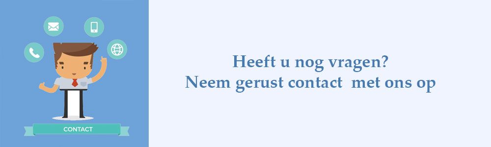Wij streven ernaar om vragen die ons via de email bereiken, binnen maximaal 24 uur te behandelen. Hiermee gaan we ervan uit dat wij u op deze manier volledig en compleet van dienst zijn.