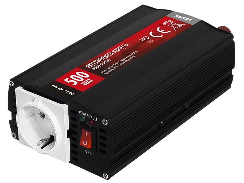 Omvormer voor o.a. vrachtwagens, voor het omzetten van 12 Volt gelijkspanning naar 230 Volt wisselspanning.