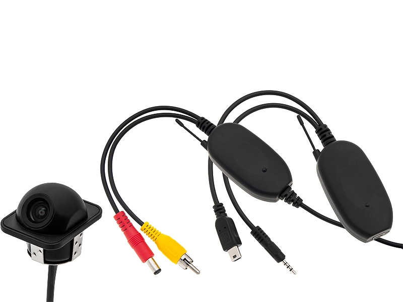 Complete achteruit-rij camera set. U kunt uw camera zowel bedraad als draadloos aansluiten en met het meegeleverde LCD scherm als goed zien vanachter uw stuurwiel.