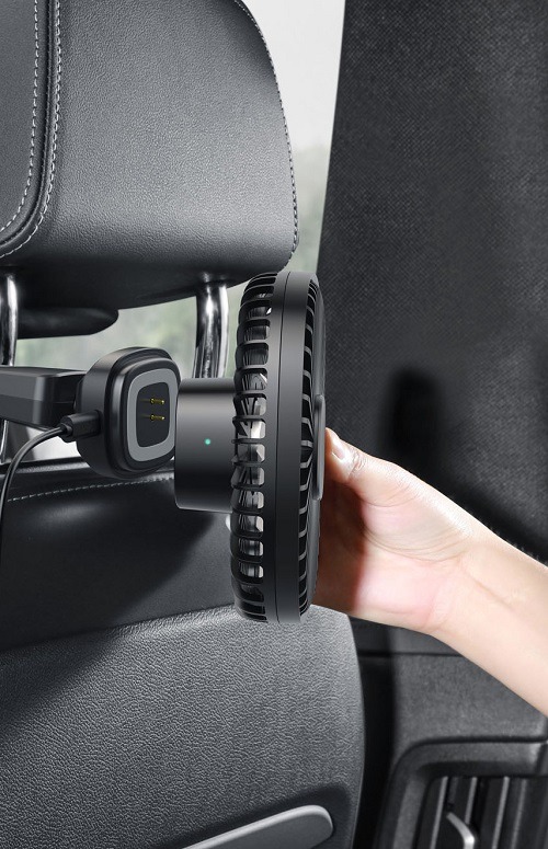 Deze mooie autoventilator is perfect voor als u op de achterbank wat meer verkoeling wilt creëren. De ventilator kan gemakkelijk worden opgehangen aan de neksteun van de stoelen voorin de auto dankzij de stevige clip. De ventilator is daarnaast gemakkelijk te verstellen dankzij het handige magnetische design, en daardoor ook makkelijk los te maken. De ventilator kan daarnaast op twee snelheden lucht blazen. De USB-kabel die standaard wordt meegeleverd is 1,5 meter lang, en daardoor is de ventilator gemakkelijk aan te sluiten in de auto.