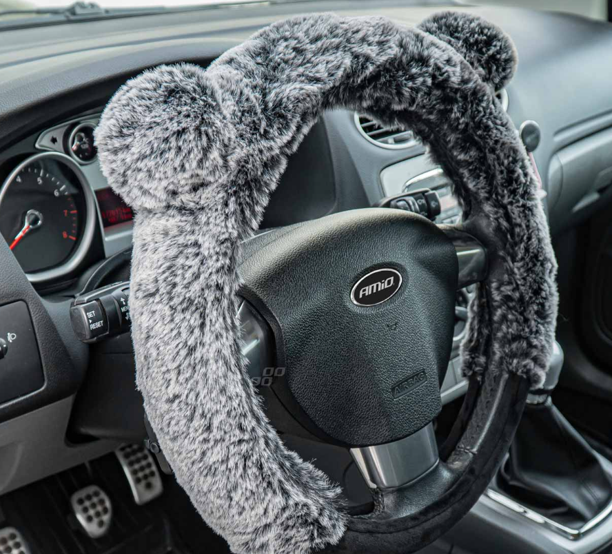 Met deze hoes beschermt u uw auto stuur eenvoudig en op stijlvolle wijze. De hoes is lekker zacht, waardoor u comfortabel kunt sturen. Verder heeft de hoes aan de binnenkant een anti-slip coating, die ervoor zorgt dat de hoes niet wegglijdt tijdens het rijden. Deze hoes heeft maat M, en is daarmee geschikt voor sturen met een diameter van 37 tot 39cm. De hoes heeft een grijs/zwarte kleur en leuke oortjes.