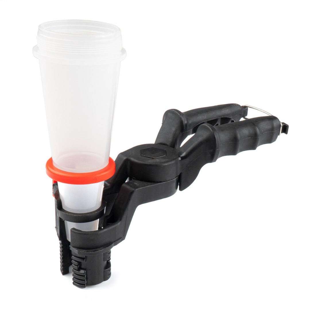• Klemt zich stevig om de trechter heen