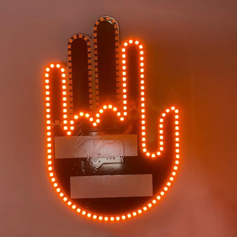 Werkt volledig draadloos met drie AA batterijen. De afstandsbediening heeft 3 functies middelvinger, stierenhoorns en hand gebaar.