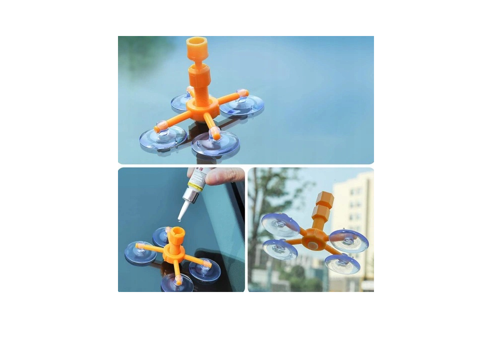 Bevestig de zuignappen aan het glas, zodat het centrale gaatje direct boven de barst of het sterretje ligt.