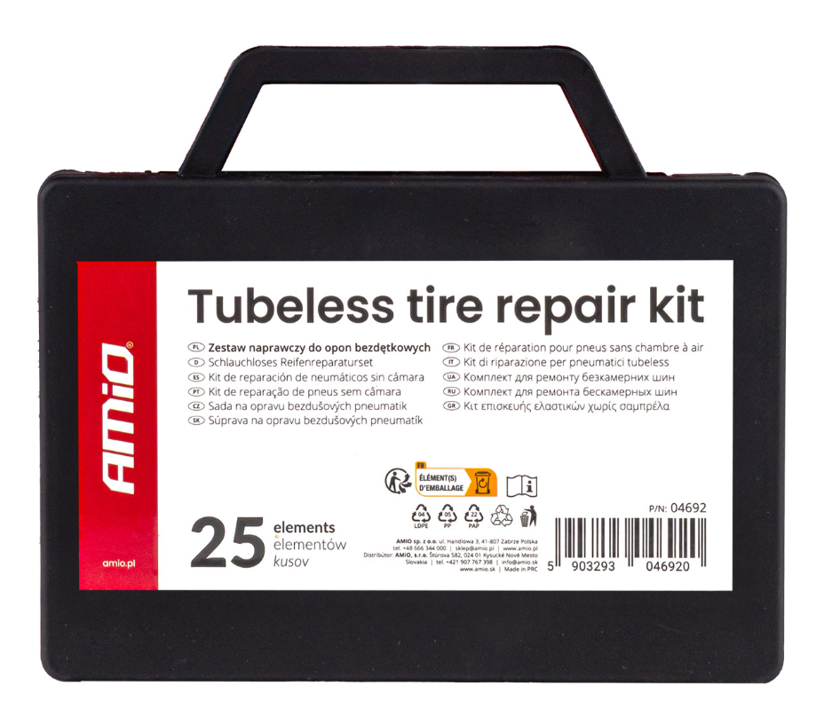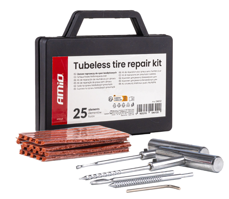 Deze complete reparatieset voor tubeless banden is ontworpen voor het snel en effectief dichten van lekke banden bij auto’s, motoren, quads en offroad-voertuigen. De set is ideaal voor werkplaatsen, bandencentra én voor particulieren die graag voorbereid zijn op onverwachte situaties onderweg. Dankzij de flexibele rubberen inserts en de stevige metalen handgrepen voert u een duurzame reparatie uit zonder de band te hoeven demonteren. Compact, praktisch en direct inzetbaar – een betrouwbare oplossing om snel weer veilig de weg op te kunnen.