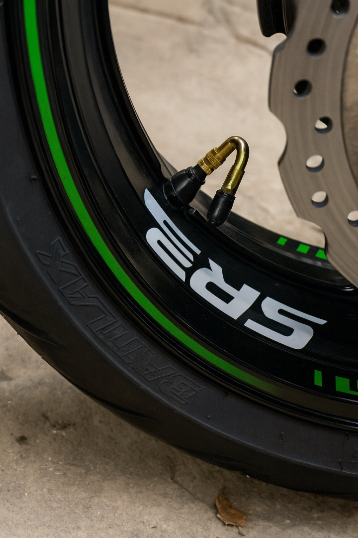Handig bij motorfietsen waarbij de ventielen vaak dicht bij de remschijf zitten.