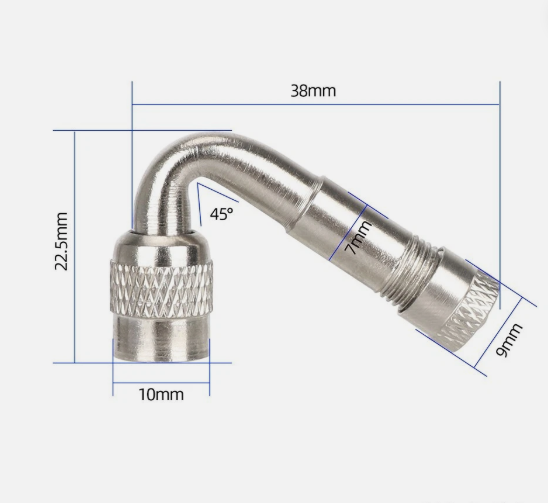 Met deze 45 graden ventielverlenger wordt het controleren en oppompen van je banden een stuk eenvoudiger. Dankzij het slimme hoekontwerp kom je gemakkelijk bij ventielen die lastig bereikbaar zijn door spaken of velgconstructie. Ideaal voor gebruik met voetpompen, compressoren of bandenspanningsmeters. Compact, duurzaam en geschikt voor auto-, motor- en fietsbanden.