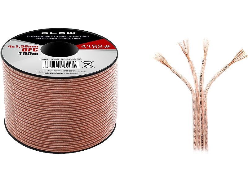 De kabel is op een handige haspel gerold. 100 Meter luidsprekerkabel met OFC aders.