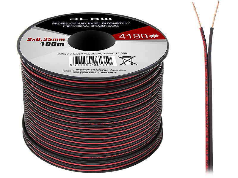 Luidsprekerkabel 2x 0.75 mm zwart/rood op rol 100 meter