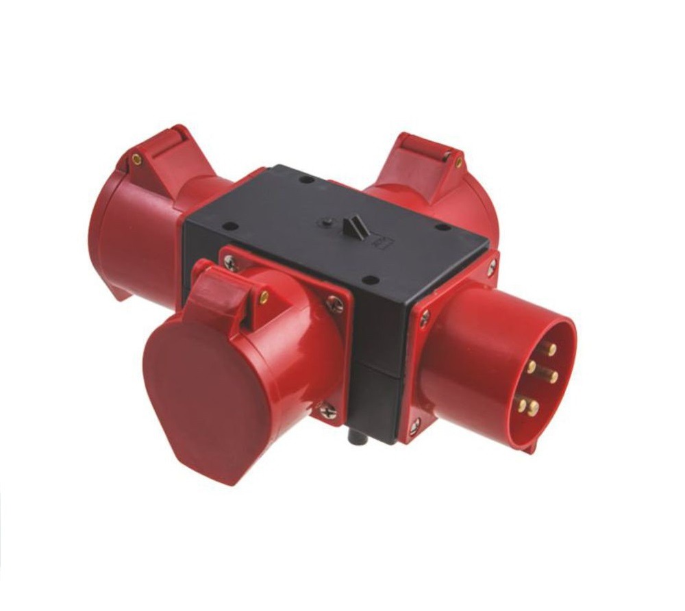 Deze stroomverdeler beschikt over 3 aansluitmogelijkheden met een hoge spanning, waardoor deze stroomverdeler zeer geschikt is om apparaten aan te sluiten die veel stroom nodig hebben om goed te kunnen werken. De stroomverdeler heeft een 5-pins male connector waarmee deze aangesloten kan worden op een energiebron. Alle andere connectoren hebben 5-pins female aansluitingen, die dus gebruikt kunnen worden om grote apparaten of machines op aan te sluiten. De female aansluitingen kunnen worden afgesloten dankzij de afdekdop, zodat deze niet vies of beschadigd worden wanneer ze niet in gebruik zijn. De verdeler werkt op een nominale spanning van 400 Volt.