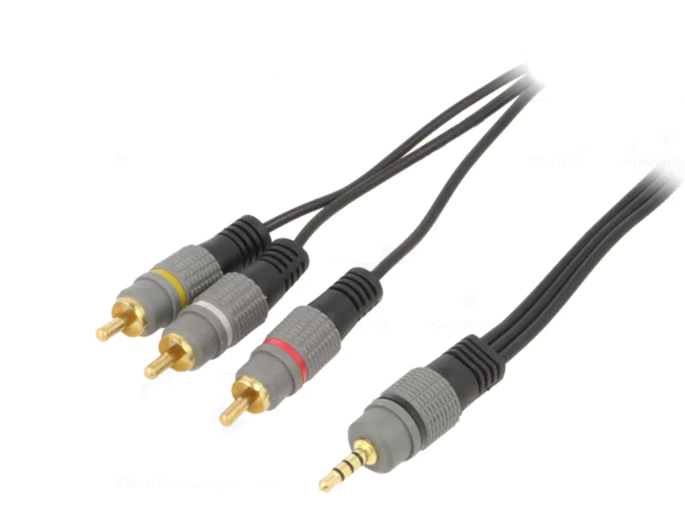 Hoogwaardige aansluitkabel van 3,5mm Jack naar Tulp audio / video.