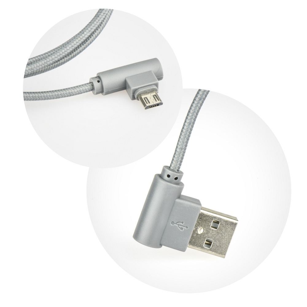 Micro USB kabel - 1 meter - Gehoekte aansluitingen - Grijs