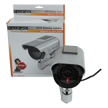 Deze professionele CCTV dummycamera in buitenbehuizing met (nep) IR LED is niet van echt te onderscheiden. Dummy camera’s zijn natuurlijk niet geschikt om eigendommen echt te beveiligen, maar uit onderzoek is gebleken dat er een grote preventieve werking van uit gaat.