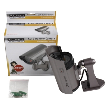 Deze professionele CCTV dummycamera in buitenbehuizing met (nep) IR LED is niet van echt te onderscheiden. Dummy camera’s zijn natuurlijk niet geschikt om eigendommen echt te beveiligen, maar uit onderzoek is gebleken dat er een grote preventieve werking van uit gaat.