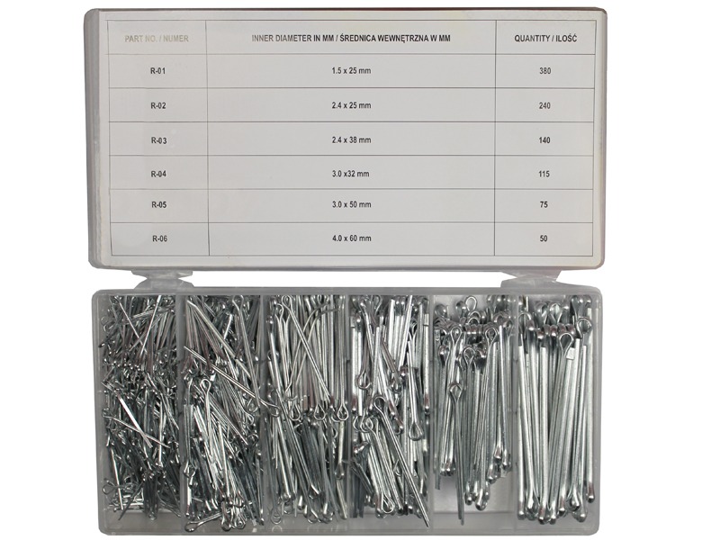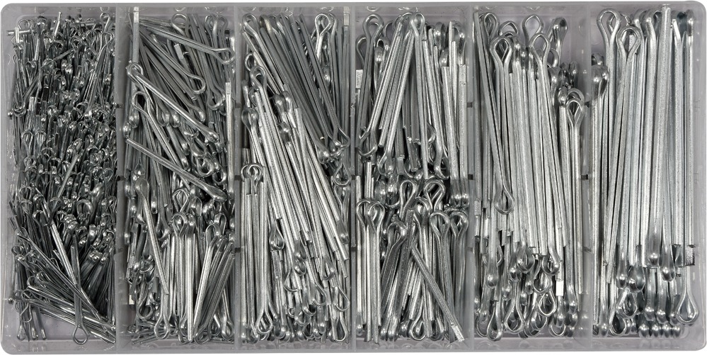 Deze set met splitpennen bestaat uit pennen in verschillende maten, en is geschikt voor een verscheidenheid aan taken. De splitpennen zijn gemaakt van sterk metaal, en blijven goed op hun plek zitten als ze zijn bevestigd. Deze splitpennen kunnen heel handig zijn voor het aan elkaar maken van bijvoorbeeld platen, of bijvoorbeeld om te verhinderen dat een moer van het schroefdraad loopt.