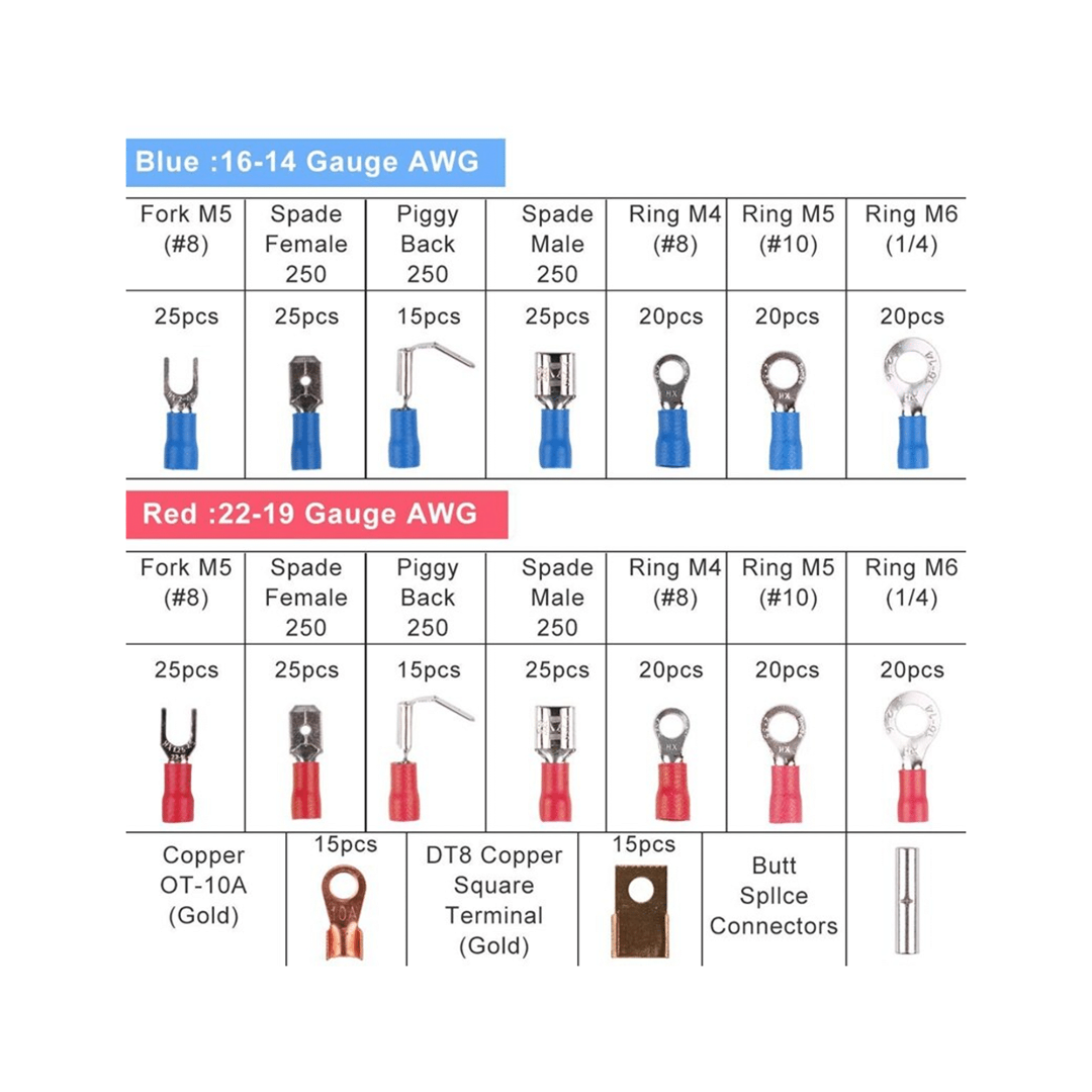 De set bevat 350 kabelschoentjes. Hier vindt u kabelschoenen met een ringcontact, maar ook vlakstekkers in terug. De kabelschoentjes zijn er in verschillende kleuren, zodat u eenvoudig bepaalde draden een bepaalde kleur kunt geven. De connectors zijn netjes verdeeld over kleine compartimenten, zodat u deze duidelijk gescheiden kunt houden. De kabelschoenen werken op een spanning van max. 600V.