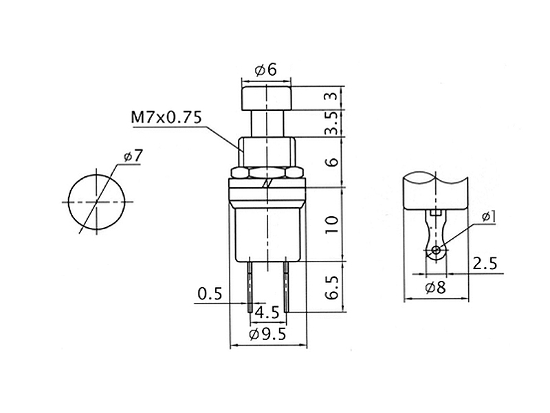 Push schakelaar - 3 Standen - 250V 16A - SP3T