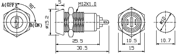 Schakelaar met sleutel - Ø12mm / 30.5mm - OFF-ON