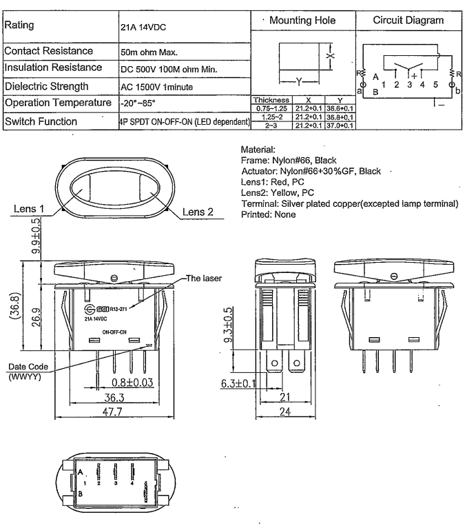 Deze SP3T schakelaar met LED-verlichting is een betrouwbare en duurzame oplossing voor het schakelen van gelijkstroomtoepassingen. Dankzij de ON-OFF-ON configuratie met drie stabiele posities is hij ideaal voor schakelingen waarbij meerdere circuits of functies nodig zijn. De dubbele LED-indicator (rood/geel) maakt het eenvoudig om de actuele schakelstand visueel af te lezen, zelfs in slecht verlichte omgevingen. Perfect geschikt voor voertuigelektronica, paneelmontage of industriële besturingstoepassingen.
