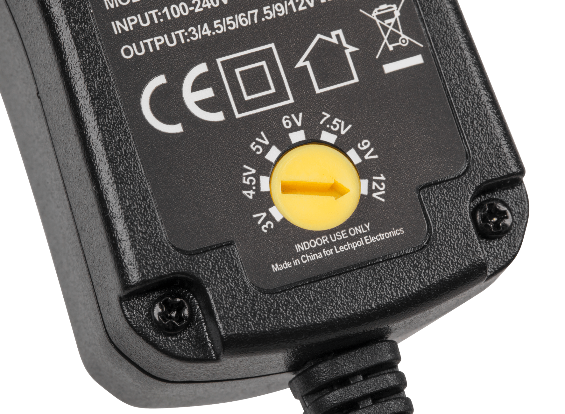 • Variabele spanning (3 / 4,5 / 6 / 7,5 / 9 / 12V)