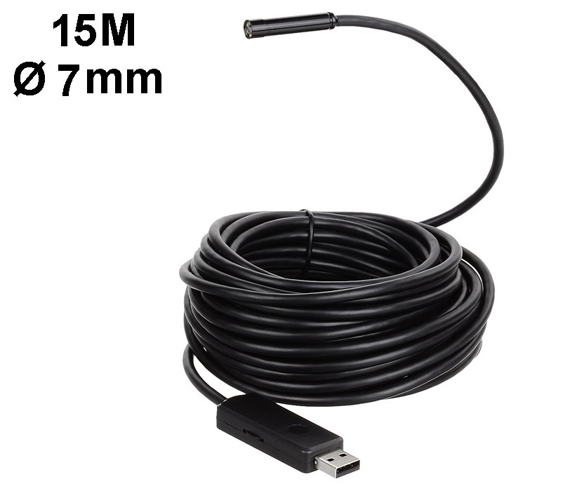 Professionele en 100% waterdichte USB Endoscoop met een lengte van 15 meter met 7mm kop incl. 6 LED. Om inspectie mee uit te voeren wanneer u een grotere lengte nodig hebt of op moeilijk bereikbare plekken. Met een waterdichte 7mm camera kop is deze endoscoop ideaal in gebruik! Deze set is klaar voor gebruik met haarscherp beeld.