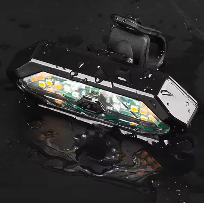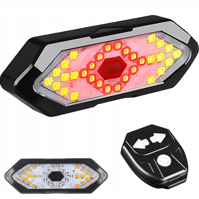Fietsverlichting met rood achterlicht en richtingaanwijzers.