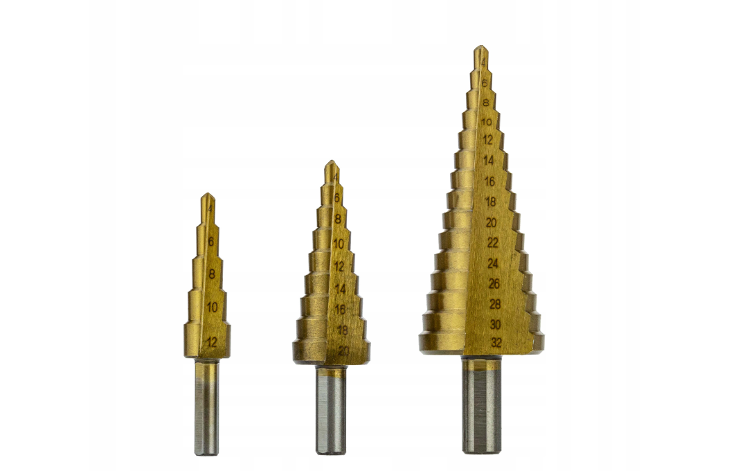 Deze trapboren, die ook weleens kegelboren worden genoemd, zien we veel terug voor stapsgewijs boorwerk in zeer harde materialen. Dat wordt mogelijk gemaakt doordat de boren zijn gemaakt met een combinatie van HSS en titanium. Hierdoor kunt u met deze boren ook heel goed boren in metaal, staalplaten, naast de zachtere materialen zoals kunststof en hout. De boren hebben stappen van 2mm, en de geboorde diepte is onuitwisbaar in de boortjes gegraveerd. Zo kunt u altijd perfect zien hoe diep u geboord heeft. Deze set bestaat uit 3 maten, met een kegelboor voor 4-12mm, een voor 6-20mm, en een voor 4-32mm. Zo heeft u met deze set altijd de juiste boor voor de juiste maat.
