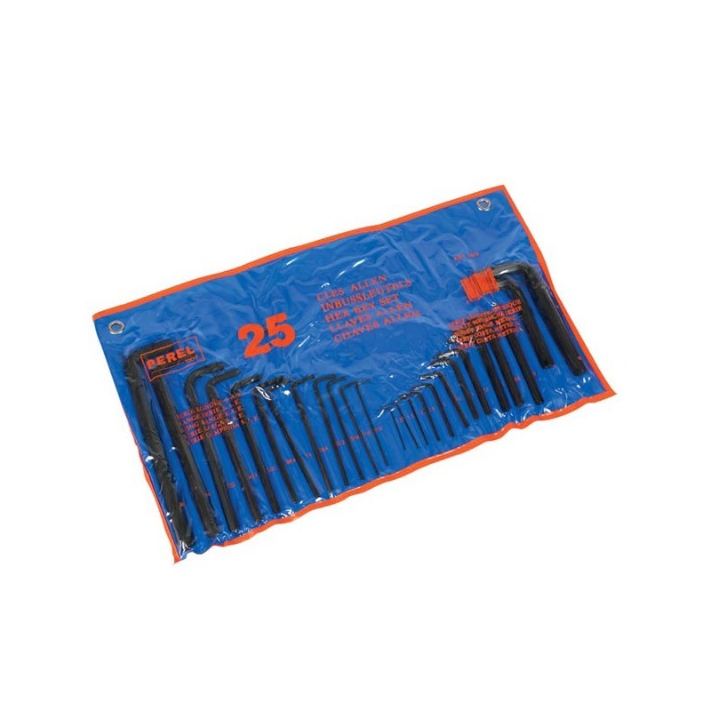 Deze set bestaat uit 25 inbussleutels in verschillende maten. Deze set bestaat daarnaast uit twee verschillende soorten sleutels: metrisch (13x, 1.5 tot 10mm) en SAE (12x, 1/16" tot 3/8"). De sleutels zijn gemaakt van gepolijst smeedstaal, en zijn daardoor niet gevoelig voor roest of corrosie. De set wordt geleverd in een handige rol met aanduidingen voor alle verschillende maten.