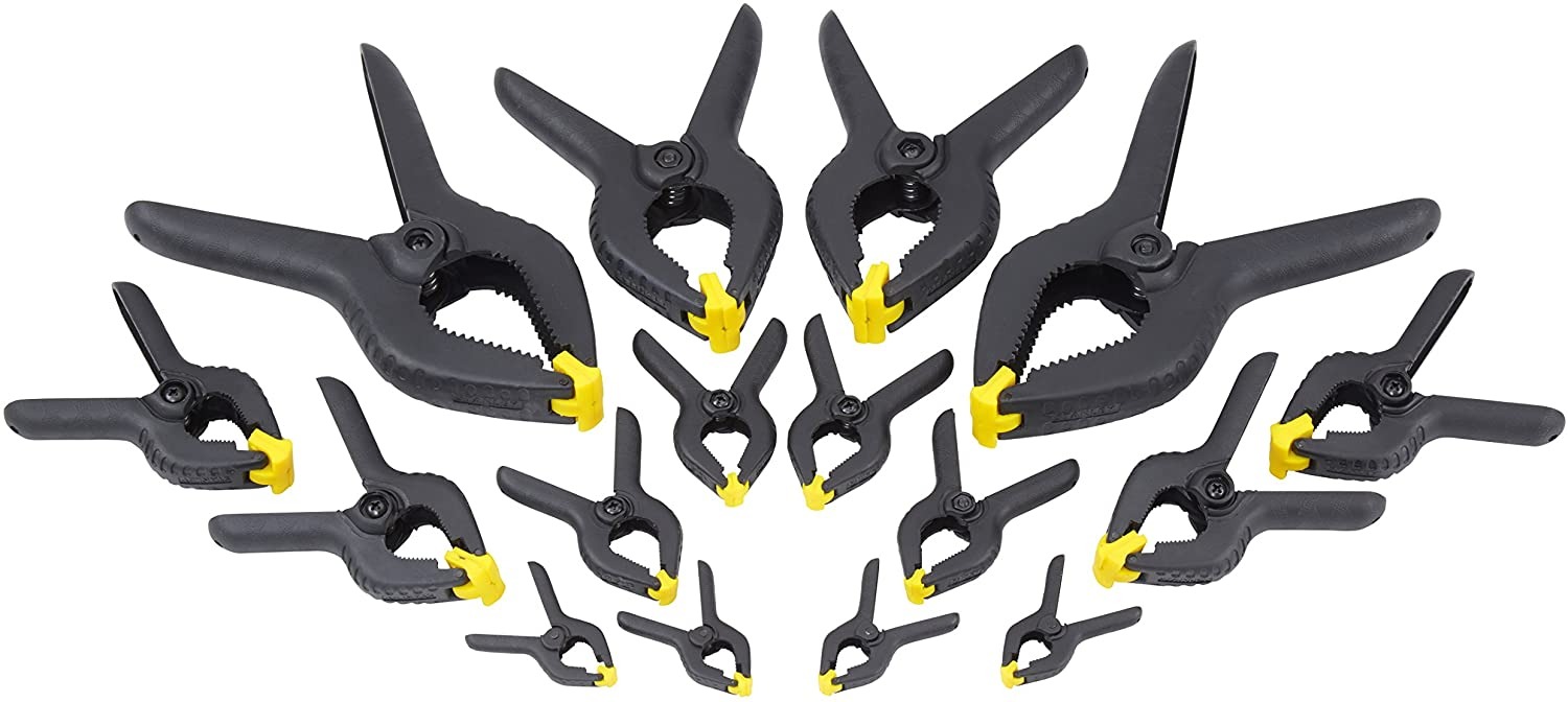 Deze set met lijmklemmen in verschillende maten is ideaal voor het vastzetten van dingen die aan elkaar moeten worden gelijmd. De klemmen zijn van zeer stevig nylon gemaakt en hebben aan het uiteinde een profiel, waardoor de klemmen goed op hun plek blijven zitten als u aan het werk bent.