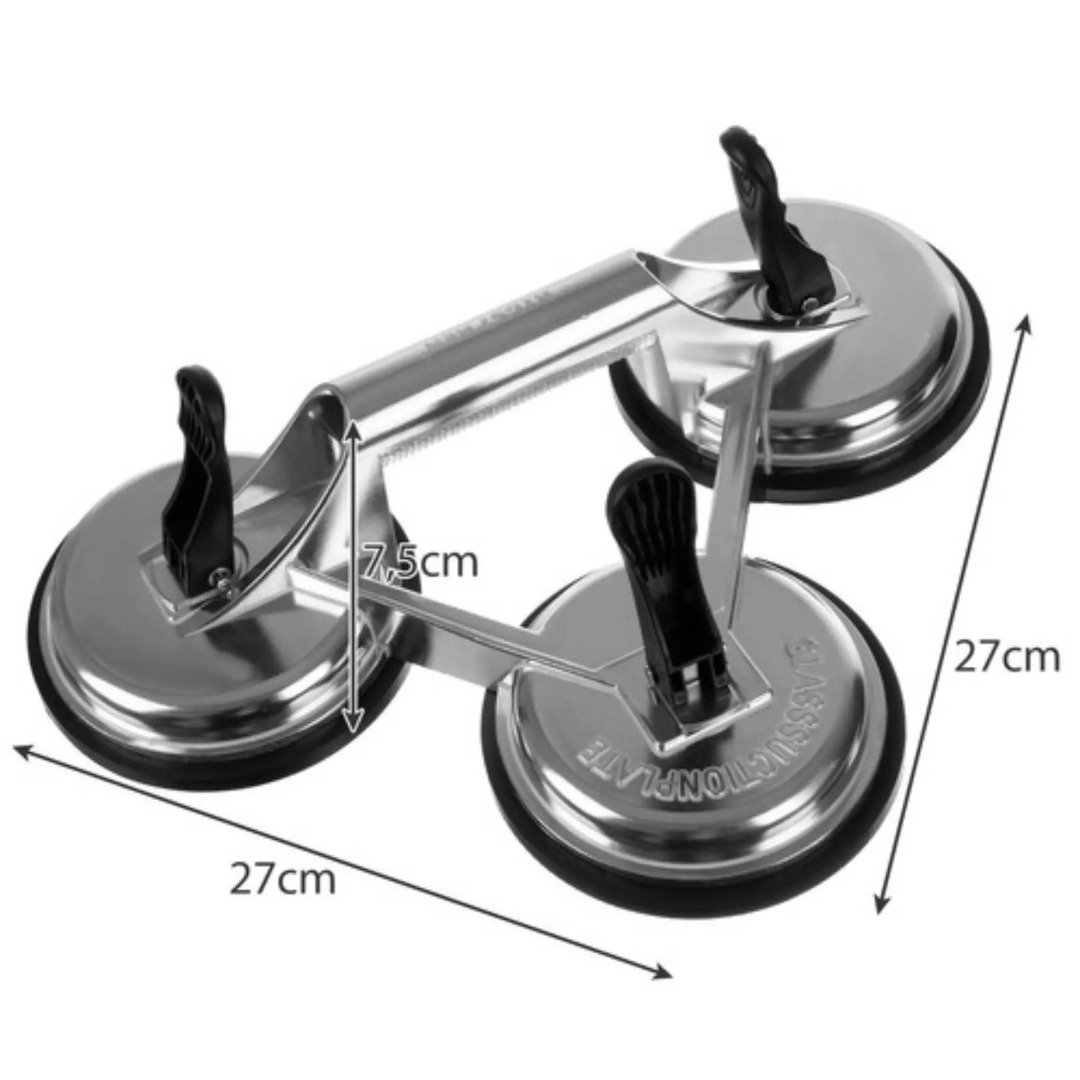 Met deze krachtige drievoudige zuignap kunt u zeer zware, maar toch fragiele voorwerpen hanteren of verplaatsen. Denk hierbij aan zware glaspanelen, tegels en spiegels. De kleppen op de zuignappen haalt u eenvoudig over, zodat de zuignappen vacuüm trekken zich zo vastzuigen aan het oppervlak. Deze tool heeft een draagvermogen van maximaal 150kg, en de drie zuignappen hebben rubberen pads met een diameter van 120mm. Dit garandeert een veilige grip op allerlei materialen. Door het handvat is de drievoudige zuignap gemakkelijk vast te houden, en zo verliest u geen controle tijdens het tillen.