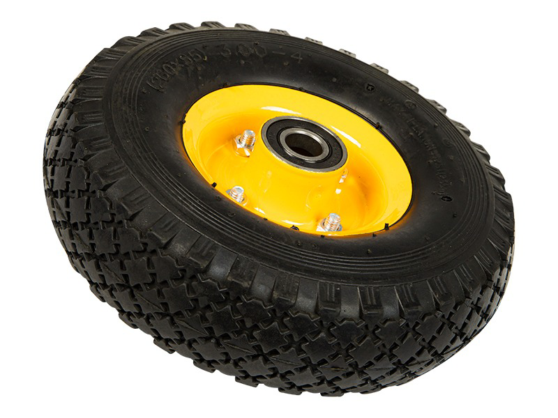 Dit wiel is universeel toe te passen voor allerlei doeleinden. Zo kunt u het wiel bijvoorbeeld onder een karretje bevestigen. Het wiel heeft een diameter van 260mm, en een dikte van 85mm. Dankzij het grove profiel in de band blijft het wiel stabiel rollen, ook op ongelijk terrein. Verder is het wiel voorzien van een binnen- en buitenband, en u kunt de band gemakkelijk leeg laten lopen of oppompen dankzij het ventiel. Door de metalen velg heeft het wiel een maximaal draaggewicht van 200kg. Het wiel is voorzien van een plastic glijlager, met een maat van 20mm.