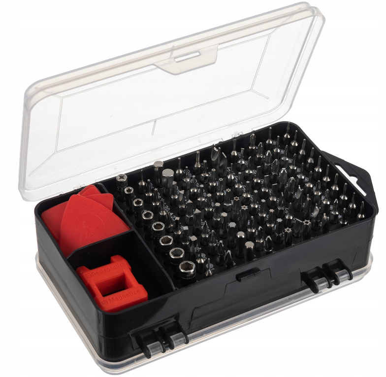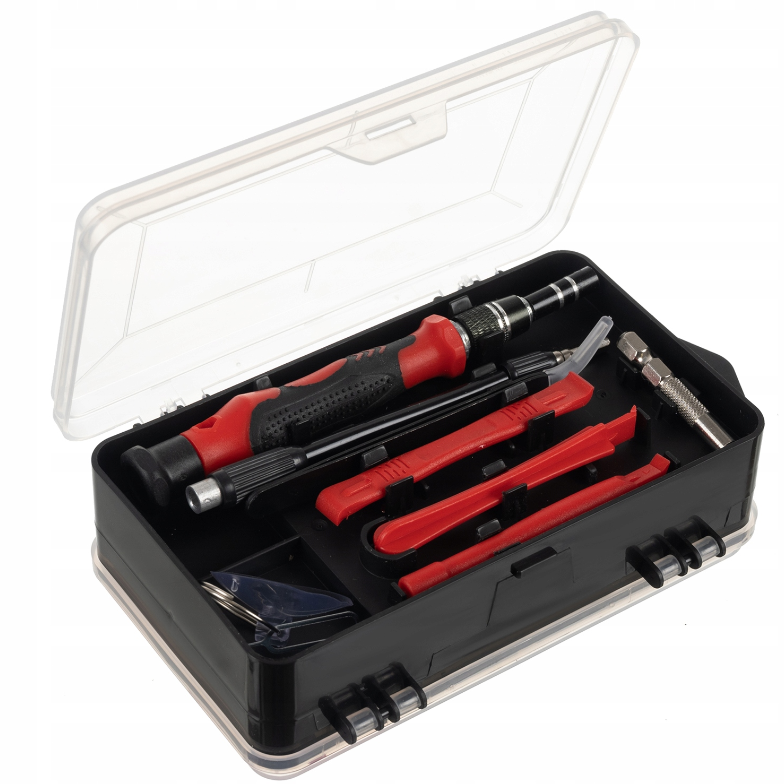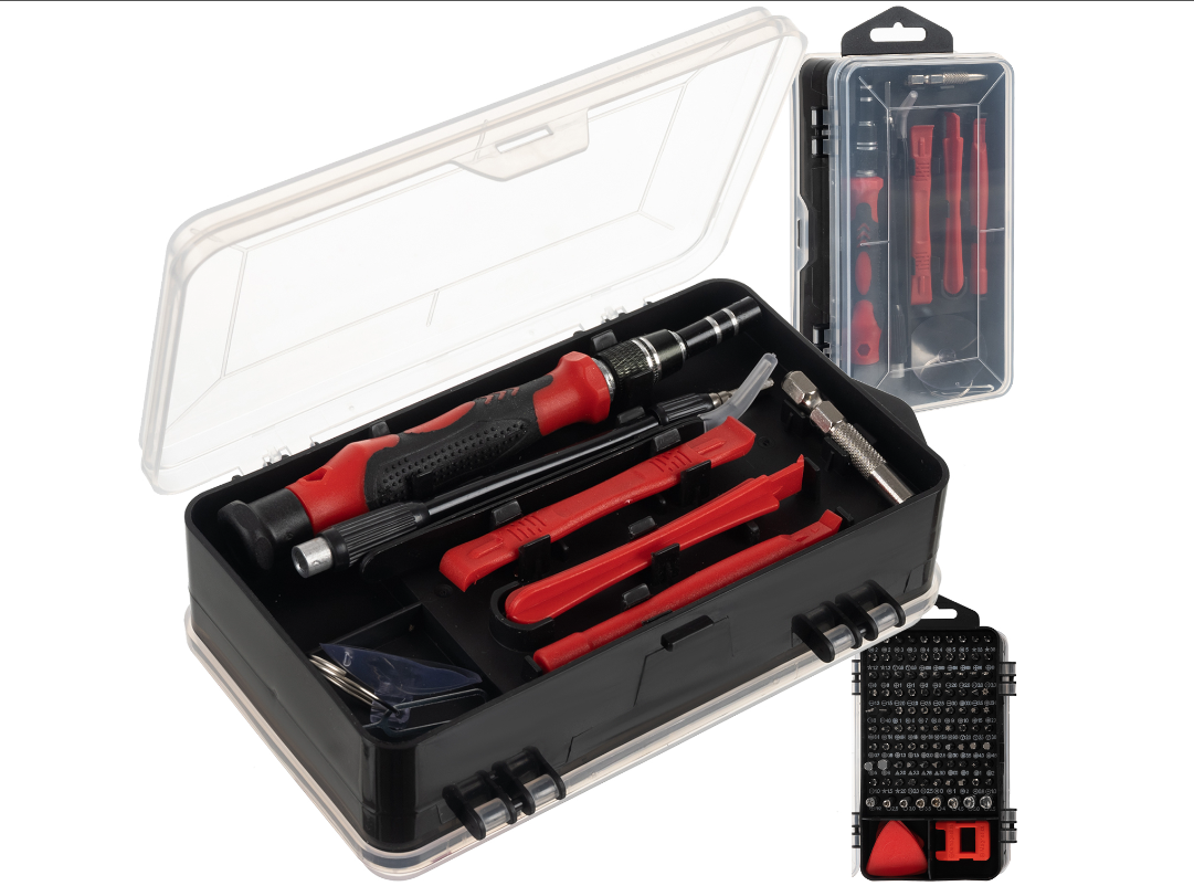 Deze set met precisiegereedschap is een must-have voor elke doe-het-zelver, of het nou uw hobby of werk is. Deze 110-delige set bevat alles wat u nodig heeft om smartphones, tablets, of camera's te repareren. Deze set bestaat voornamelijk uit kleine gereedschappen, zoals kleine bitjes in allerlei maten. Zo bestaat de set onder andere uit magnetische en niet-magnetische schroevendraaier, bitjets, klemmetjes, een zuignap, etc. De schroevendraaier en bitjes zijn gemaakt van chroom-vanadium gereedschapsstaal, wat een lange levensduur garandeert. Ten slotte wordt deze uitgebreide set geleverd in handig opbergdoosje, met aparte opbergvakjes voor alle onderdelen.