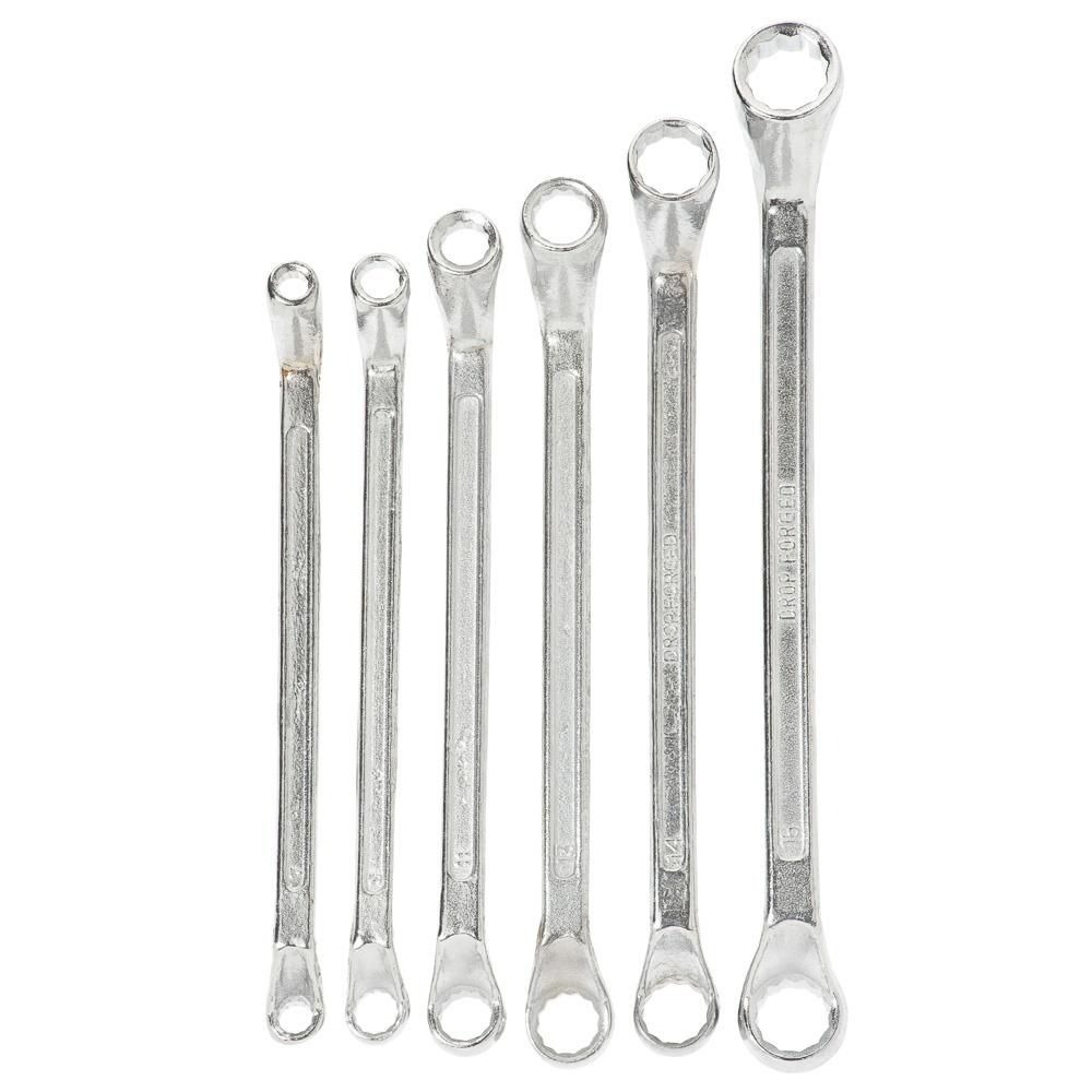 Deze set met ringsleutels hoort thuis in elke werkplaats, hobbyplek of garage. De sleutels hebben elk twee maten, waardoor u met 6 sleutels 12 verschillende maten krijgt. De set is gemaakt van hoogwaardig gereedschapsstaal, wat inhoudt dat de sleutels een hoge bestendigheid hebben tegen roesten en vuil, maar ook slijtage. De sleutels hebben de volgende maten: 6 en 7mm, 8 en 9mm, 10 en 11mm, 12 en 13mm, 14 en 15mm, en 16 en 17mm.