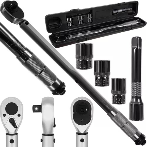 Momentsleutel - 1/2 inch - Met 3 opzetstukken en verlengstuk