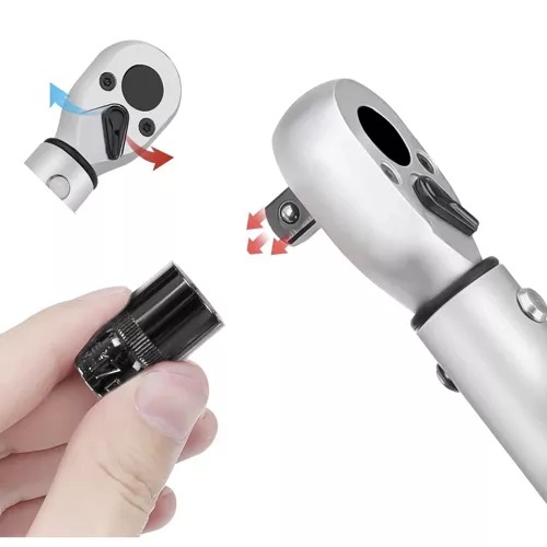Een momentsleutel is als het ware een zelfde soort gereedschap als een ratel of steeksleutel. De sleutel werkt als hefboom, waarmee u kracht kunt overbrengen op bijvoorbeeld bouten en moeren. Een momentsleutel zorgt daarnaast voor zeer gerichte kracht overdracht, zodat bouten en moeren niet beschadigd raken. Deze momentsleutel is geschikt voor gebruik bij vierkante en zeskantmoeren en -bouten, maar ook bij onderdelen van bijvoorbeeld motors. Daarnaast is de sleutel voorzien van een handige LOCK functie waardoor de sleutel stil blijft staan. U kunt deze vervolgens weer loslaten met de UNLOCK functie. Verder wordt bij de sleutel ook een ratelkop geleverd, zodat u de sleutel breed kunt toepassen.