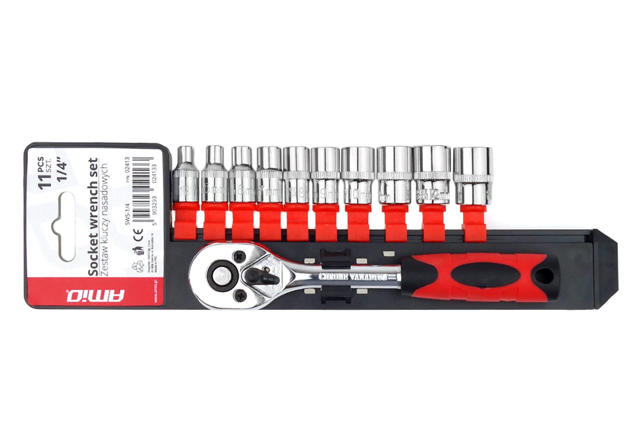Deze duurzame dopsleutelset is gemaakt van sterk staal en biedt uitstekende mechanische weerstand, hoge slijtvastheid en lange levensduur. De meegeleverde ratel met 1/4 inch aansluiting is eveneens vervaardigd uit stevig staal, wat zorgt voor optimale bescherming tegen corrosie, oxidatie en slijtage, zelfs bij intensief gebruik. Dankzij de antislip handgreep ligt de ratel comfortabel in de hand en biedt hij een stevige grip tijdens het werken. De ratel beschikt over een links-rechts schakelmechanisme, een snelontgrendelingsknop en een soepele werking voor precies en efficiënt sleutelwerk.