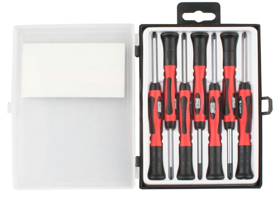 Deze 7-delige precisieschroevendraaierset is ideaal voor fijn en nauwkeurig schroefwerk. De precisieschroevendraaierset voor elektronica en reparaties is geschikt voor het werken aan smartphones, tablets, laptops, computers, camera’s, brillen en horloges. Dankzij de ergonomische rubberen handgrepen ligt elke schroevendraaier comfortabel in de hand en is gecontroleerd werken mogelijk, zelfs bij langdurig gebruik.