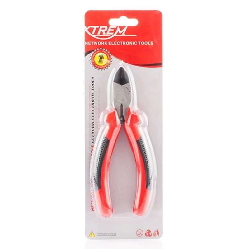 Stevige zijkniptang van staal met anti-slip handvatten.
