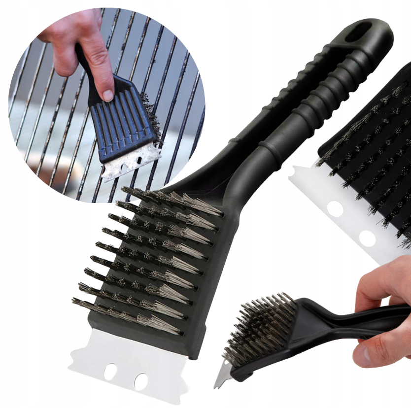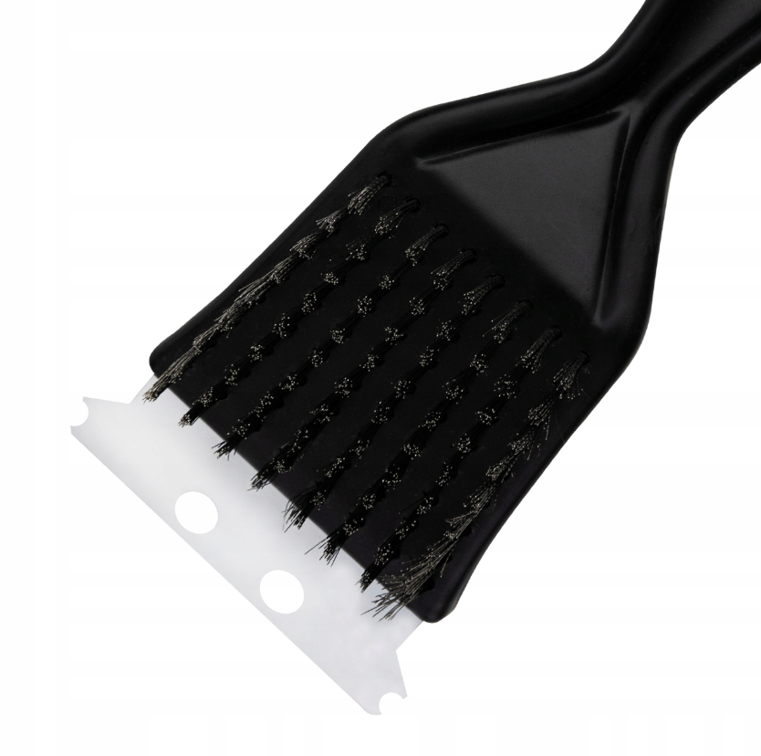 Met deze staalborstel reinigt u eenvoudig uw grill, barbecue of buitenkeuken. De stalen haren op de borstel zorgen ervoor dat voedsel-, vet- en vuilresten gemakkelijk verwijderd kunnen worden. Zo houdt u uw grill of barbecue schoon, wat de levensduur en het grillen ten goede komt. De staalborstel is daarnaast ook voorzien van een handige schraper, die nog grovere resten gemakkelijk losmaakt en verwijdert. De staalborstel heeft een kunststof handvat en een lengte van 20,5cm. De haren op de borstel zijn 1,5cm lang, en volledig van staal gemaakt.