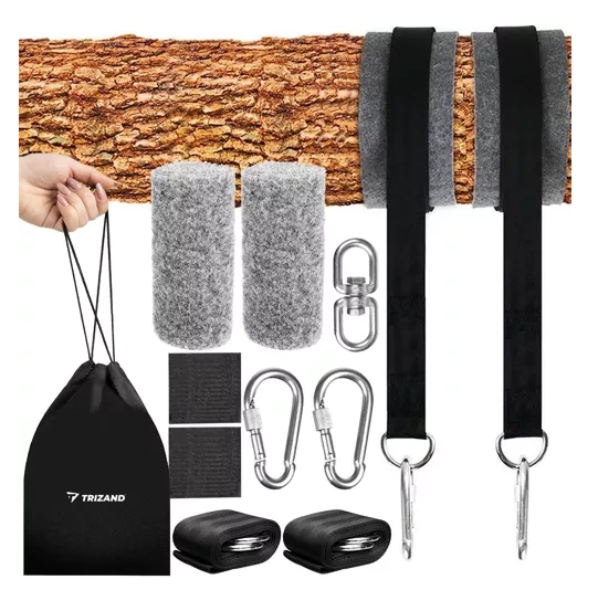 De set is eenvoudig te monteren zonder te boren of schade aan bomen te veroorzaken. Alle onderdelen zijn vervaardigd uit duurzame materialen zoals nylon, polyester, roestvrij staal en verzinkt ijzer, wat zorgt voor een lange levensduur en een hoge belastbaarheid tot 150 kg. De meegeleverde opbergtas houdt alles netjes bij elkaar en maakt het setje ideaal om mee te nemen op reis of op te bergen buiten het seizoen.