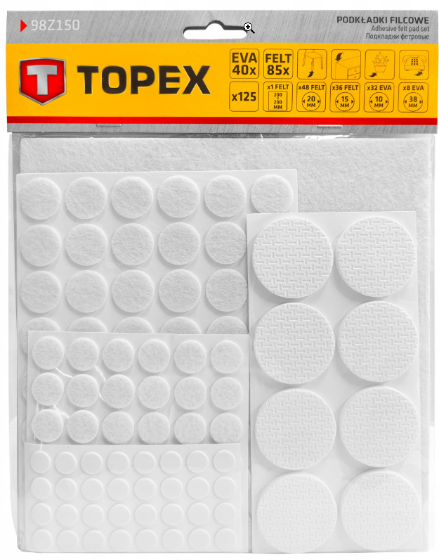 De set bevat meerdere formaten en diktes zodat je altijd het juiste type pad bij de hand hebt. Zowel vilt als EVA-schuim bieden uitstekende schokabsorptie en bescherming, geschikt voor meubels, apparaten en decoratieve objecten.