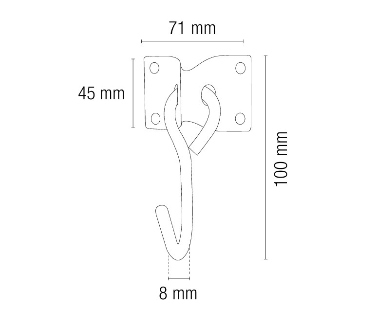 • Afmetingen haak: 45 mm breed x 58 mm diep x 8 mm dik