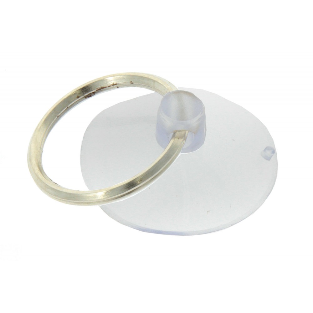 Een metalen ring bevestigd op een kleine transparante zuignap.