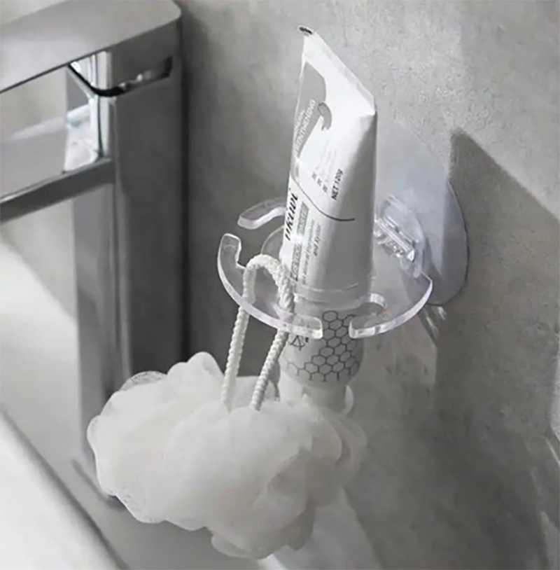 Handige houder met plakstrip, bijvoorbeeld voor aan de muur in de badkamer.