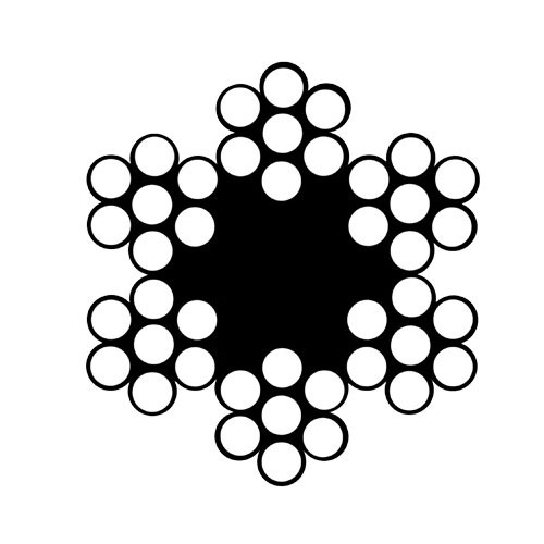 En dat de staalkabel uit 6 strengen gevlochten is, oftewel de kabel bestaat uit 6 gevlochten strengen welke elk uit 7 aders bestaan.