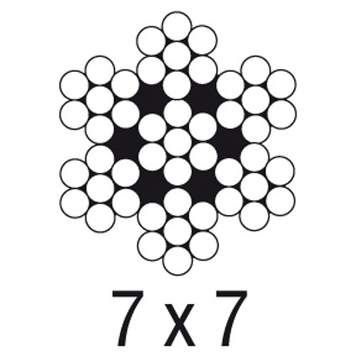 En dat de staalkabel uit 7 strengen gevlochten is, oftewel de kabel bestaat uit 7 gevlochten strengen welke elk uit 7 aders bestaan.