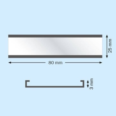 De strip is 25mm hoog en 80mm lang.