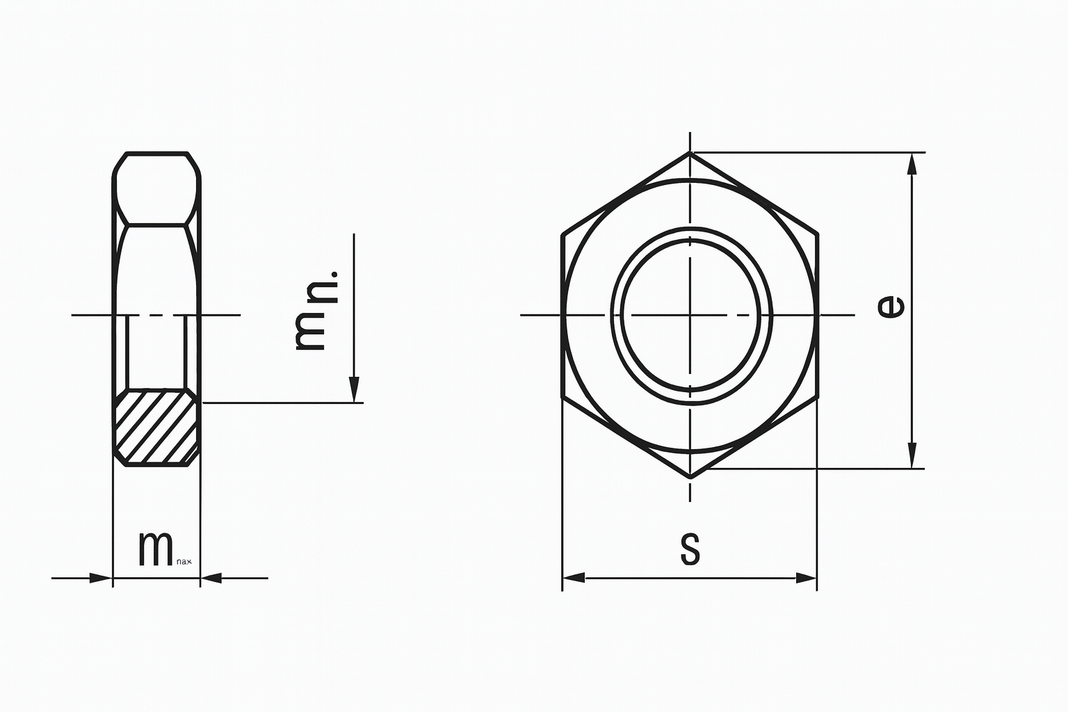 De moer voldoet aan de BN 125 norm en is ontworpen met precieze toleranties, waardoor hij compatibel is met alle standaard M10 schroefverbindingen. De maatvoering omvat onder andere een minimale waarde van 18,9 mm over de hoeken.