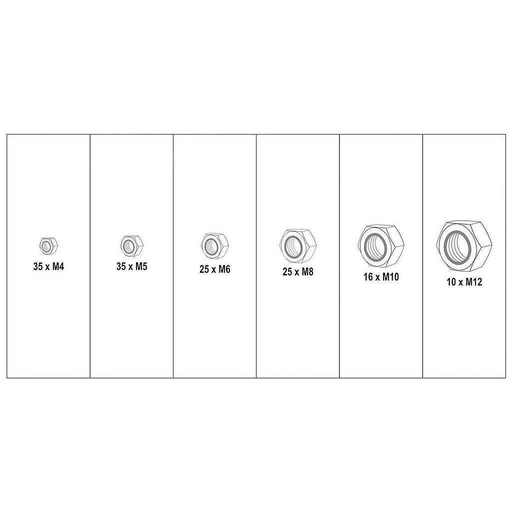 Met deze assortiment doos heb je altijd de juiste maat borgmoer in huis. Van M4 tot M12 en alles wat daar tussen zit. De borgmoeren zijn voorzien van metrisch schroefdraad en een nylon borgrand. De borgmoeren zijn hierdoor zelfborgend.