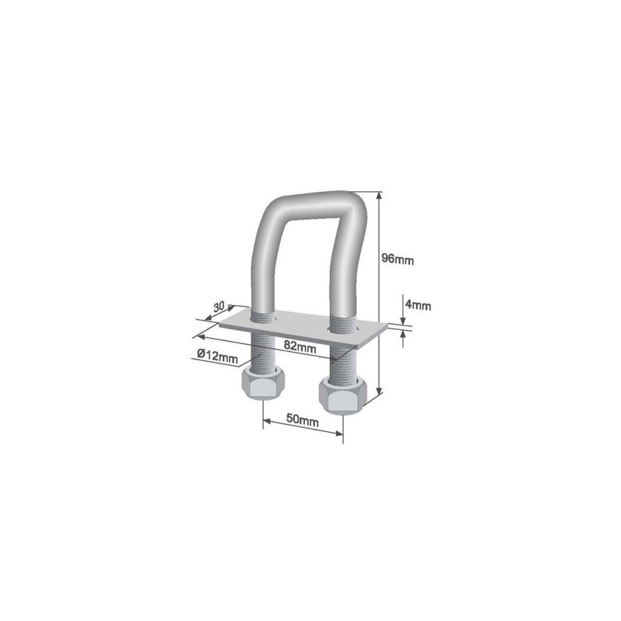 U-beugel met stropplaat - M12 - 96mm - Gebogen